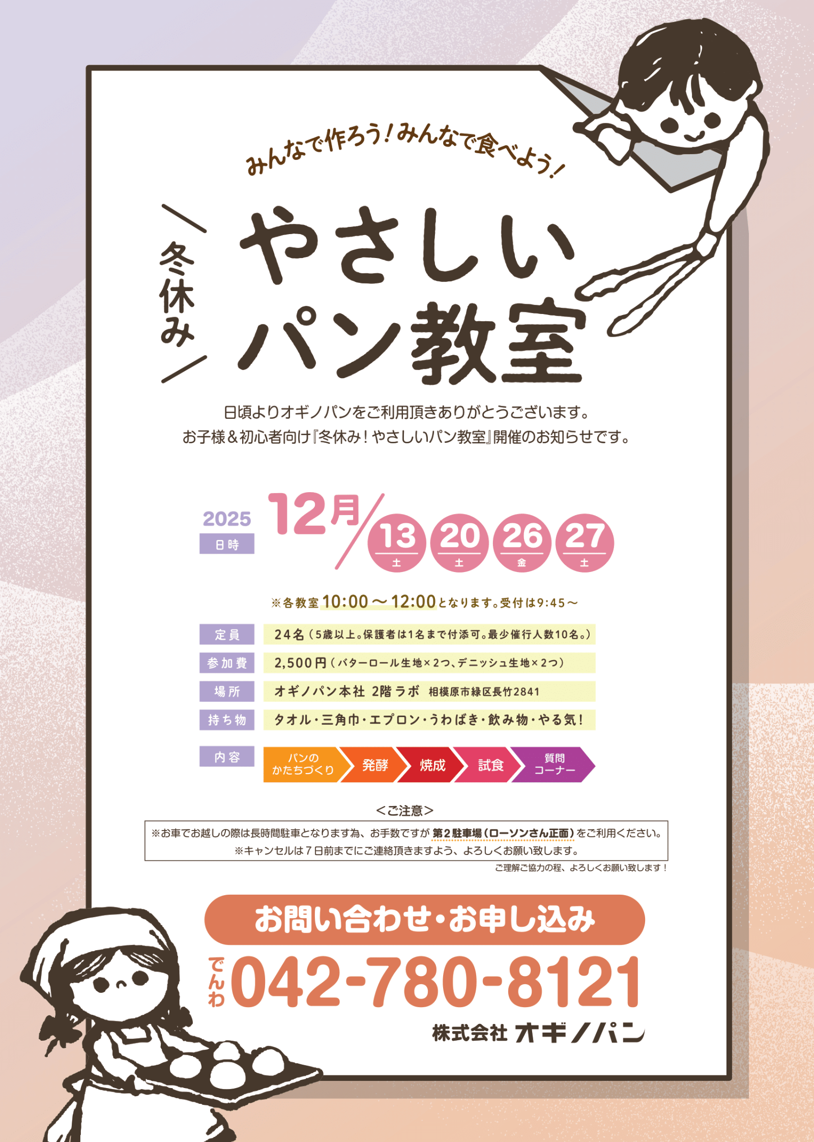 オギノパンでは大きく分けて2つの内容のパン教室をご用意しております。